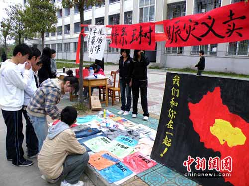 中新網(wǎng)鄭州4月19日電 (記者 師紅壘 通訊員 張涵)自青海玉樹發(fā)生7.1級(jí)地震以來,震區(qū)的災(zāi)情一直牽掛著河南省信陽師院學(xué)子的心。4月18日下午,文學(xué)院學(xué)生自發(fā)組織的“情系災(zāi)區(qū),匯聚愛心”跳蚤市場(chǎng)賑災(zāi)義賣活動(dòng)舉行。