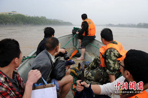 消防官兵隨即調(diào)集一艘沖鋒舟,會(huì)同桂林防汛指揮部工作人員一起,從該市解放橋頭采取沖鋒舟順流而下的辦法進(jìn)行施救。至下午15時(shí)30分,救援隊(duì)員已從島上救出被困人員。完