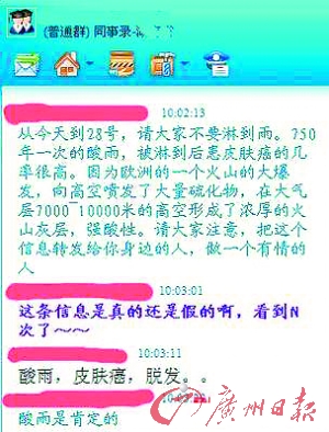 對于網(wǎng)絡(luò)和手機(jī)上瘋傳的“火山灰?guī)?50年一次的酸雨”,廣西、湖南等地氣象部門都已緊急辟謠。廣東省氣象局也提出昨天廣東降雨P(guān)H值正常,未受火山灰影響。