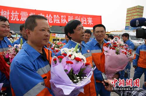 中新網(wǎng)成都4月26日電(記者劉忠俊)26日,國家電網(wǎng)四川省電力公司電力抗震救災搶險隊安全從地震災區(qū)玉樹返蓉。該支抗震救災搶險隊為玉樹災區(qū)送去了發(fā)電機、發(fā)電車以及電力搶險設備和救援物資,為玉樹災區(qū)災民安置區(qū)、學校復課提供了充足的電力保障。