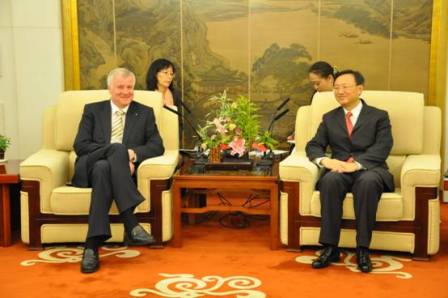 中新網(wǎng)4月27日電 據(jù)外交部網(wǎng)站消息,外交部長楊潔篪今日在外交部會見德國巴伐利亞州州長、基社盟主席澤霍夫。楊外長積極評價中德關(guān)系以及中國與巴伐利亞州的友好合作,希望雙方相互尊重,進(jìn)一步增進(jìn)了解,努力擴(kuò)大互利合作。澤霍夫說,巴伐利亞州與中國的友誼源遠(yuǎn)流長,前州長施特勞斯1975年訪華時毛澤東主席曾予接見。巴伐利亞州將繼承傳統(tǒng),繼續(xù)發(fā)展同中國的各領(lǐng)域合作。