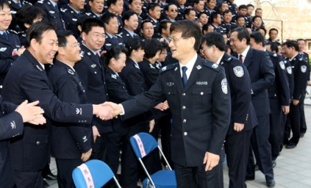 孟建柱要求,要毫不動搖地堅持從嚴(yán)治警、從優(yōu)待警方針,著力增強公安隊伍的凝聚力和戰(zhàn)斗力。要切實把從嚴(yán)治警與從優(yōu)待警有機結(jié)合起來,既要對民警嚴(yán)格教育、嚴(yán)格要求、嚴(yán)格管理、嚴(yán)格監(jiān)督,又要尊重民警、關(guān)心民警、愛護(hù)民警。要以制約和監(jiān)督權(quán)力為核心,以提高執(zhí)行力為抓手,全面加強反腐倡廉制度建設(shè),堅持用制度管權(quán)、按制度辦事、靠制度管人,不斷提高反腐倡廉工作的水平;要穩(wěn)妥推進(jìn)公安機關(guān)執(zhí)法勤務(wù)機構(gòu)警員職務(wù)套改工作,積極拓寬民警的職業(yè)發(fā)展空間;要科學(xué)合理安排民警的工作、學(xué)習(xí)和生活,高度重視民警身心健康,千方百計解決民警后顧之憂,讓廣大民警能夠真切地感受到成就感、安全感和幸福感。