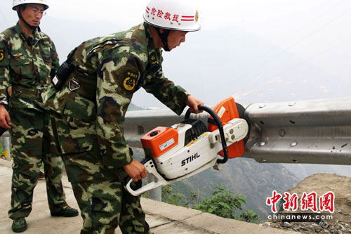據(jù)汶川縣公路局局長(zhǎng)王永新介紹,排險(xiǎn)工作結(jié)束后,汶川縣公路部門將爭(zhēng)取用6個(gè)小時(shí)左右時(shí)間搶通出一條臨時(shí)過(guò)往便道。目前,汶川縣公路部門已出動(dòng)30名路政、道班人員和4輛裝載車原地待命,只等山體排險(xiǎn)工作結(jié)束,立刻開(kāi)展垮塌路段的土石清理,全力搶通道路。