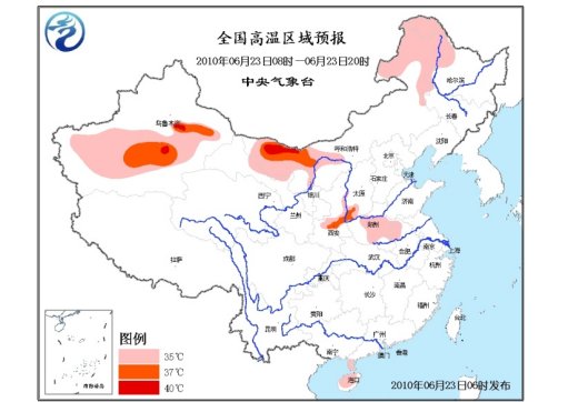 中新網(wǎng)6月23日電 中央氣象臺(tái)6月23日06時(shí)繼續(xù)發(fā)布高溫藍(lán)色預(yù)警:預(yù)計(jì),今天白天,甘肅西部偏北地區(qū)、寧夏北部、內(nèi)蒙古西部和東北部、黑龍江西部、山西西南部、河南中東部、安徽西北部、陜西關(guān)中地區(qū)以及海南大部有35~37℃的高溫天氣,其中,內(nèi)蒙古西部的局部地區(qū)最高氣溫可達(dá)40~41℃。新疆南疆盆地大部以及吐魯番和哈密地區(qū)將有35~37℃的高溫天氣,其中,吐魯番盆地最高氣溫可達(dá)40℃。
