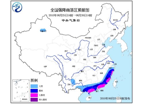 中新網(wǎng)6月25日電 中央氣象臺6月25日06時繼續(xù)發(fā)布暴雨黃色預(yù)警:預(yù)計,6月25日08時到6月26日08時,浙江中南部、福建大部、廣東、廣西中南部有大到暴雨,其中,廣西東部、廣東東部及云浮地區(qū)、福建東部等地的部分地區(qū)有大暴雨;上述部分地區(qū)并伴有短時雷雨大風(fēng)等強(qiáng)對流天氣。另外,云南東部的部分地區(qū)有大雨。