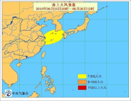中新網(wǎng)6月25日電 據(jù)中國氣象局網(wǎng)站消息,中央氣象臺今日18時繼續(xù)發(fā)布海上大風(fēng)預(yù)報。