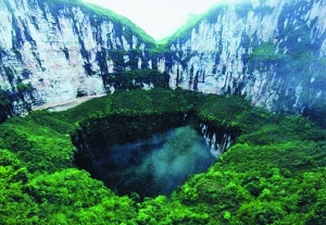 天坑 2001年之前,通常指重慶奉節(jié)縣的小寨天坑(上圖)。2005年后,這個中國人定義的術(shù)語獲得國際喀斯特學術(shù)界認可,以“tiankeng”通行國際。