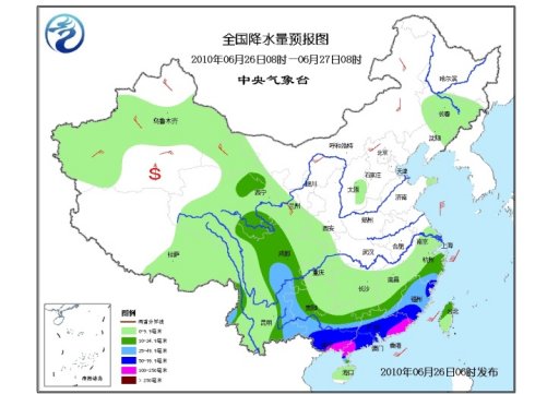 中新網(wǎng)6月26日電 中央氣象臺26日6時發(fā)布短期天氣預(yù)報顯示,未來三天,青藏高原及其以東大部地區(qū)多降雨天氣,其中,浙江南部、江西南部、福建大部、廣西中南部、廣東大部等地有大雨或暴雨,局地有大暴雨;云南西北部和東部、貴州西部和南部、四川盆地南部、黑龍江東部等地有大雨;上述部分地區(qū)并伴有短時雷雨大風(fēng)或冰雹等強對流天氣。