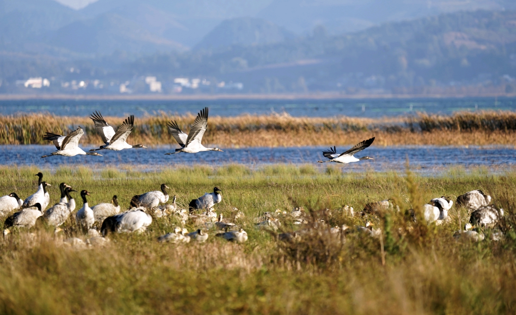 鶴鳴九皋,聲聞于野。進入11月,貴州高原最大的淡水湖泊——草海陸續(xù)迎來“高原仙子”黑頸鶴到此越冬。