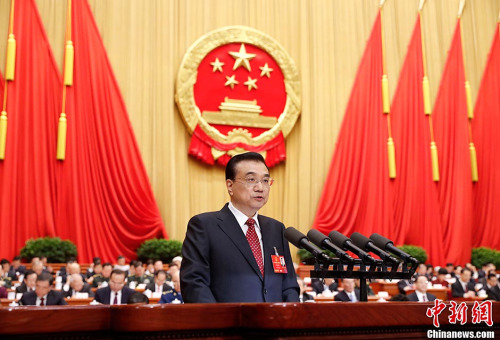 3月5日,十二屆全國人大四次會議在北京人民大會堂開幕。國務(wù)院總理李克強作政府工作報告。中新社記者 劉震 攝
