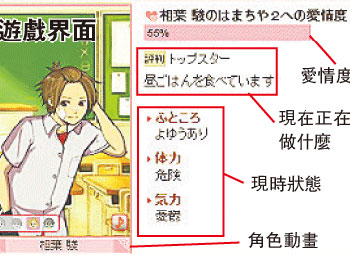 為勾起會員“青澀的初戀感覺”,整個虛擬環(huán)境設(shè)定在某所中學(xué)校園里。用戶登入之后,可以從4名卡通風格的男角中,選一人作為“網(wǎng)上男朋友”,在校園內(nèi)談情說愛。4個男生各有特色,包括高材生型、陽光型、壞男孩型和教師型。這些虛擬男友由多名男聲優(yōu)配音,用家如果想和“男友”增進感情,就要多登入該網(wǎng),然后通過對話和其它虛擬活動,來令“愛情度”增加。