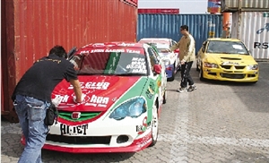參賽房車經(jīng)九澳貨柜碼頭運到。(圖片來源:澳門日報)