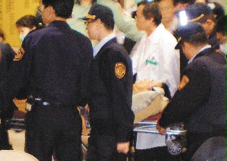 為了避免陳水扁曝光,救護(hù)車直接倒車進(jìn)入急診處把他放下。滿臉胡渣的陳水扁,躺在救護(hù)車的推床上,身體用橘黃色被單蓋著,手、腳未上戒具。他戴著眼鏡躺在推床上,沒(méi)有慷慨激昂的高分貝呼喊,他始終緊閉雙眼,不發(fā)一語(yǔ)。