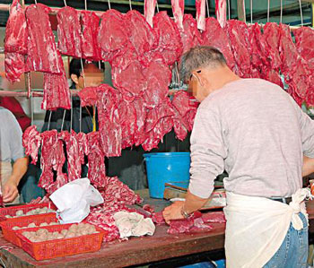 據(jù)悉,該些巴西冷藏牛仔扒批發(fā)價僅22元一斤,奸商將之解凍充當(dāng)新鮮肉,以每斤60元出售,每斤可賺38元,若以每日出售約200斤計,利潤已高達(dá)7000多元,可謂“賺到笑”。該人士又表示,不少肉檔為掩人耳目,會將冷藏肉混合新鮮牛肉售賣。