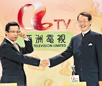 中新網(wǎng)12月5日電 香港《星島日?qǐng)?bào)》今日在頭條刊發(fā)報(bào)道稱,傳統(tǒng)免費(fèi)電視展開(kāi)新一輪戰(zhàn)幔,長(zhǎng)期虧損的香港亞洲電視,繼大裁員及多名高層離開(kāi)后,4日出人意表地宣布,委任兩名電訊界巨頭加盟,分別由前電盈副主席張永霖出任執(zhí)行主席,城市電訊及香港寬帶網(wǎng)絡(luò)主席王維基接掌行政總裁。