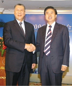 黃華華、何厚鏵親切握手,顯示粵澳合作無間。(圖片來源:澳門日報)