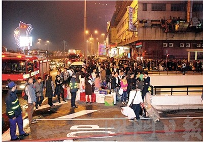 逾四百住客疏散到街上暫避。(圖片來(lái)源:澳門(mén)日?qǐng)?bào))