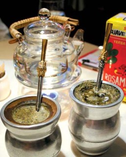 原來馬黛茶的喝法還有一定的講究,不是像喝一般的茶或咖啡,是要先用特制的吸管、勺子、過濾器三合為一的工具,放進沖了水的茶里先吹一口氣,然后再慢慢的吸,可以輕輕拌一下,但不可經(jīng)常攪拌。喝起來有點像苦丁茶的味道,如果覺得苦,可以加點砂糖。吃烤肉喝馬黛茶可以消暑降火,看來這才是真正的“鬼佬涼茶”。