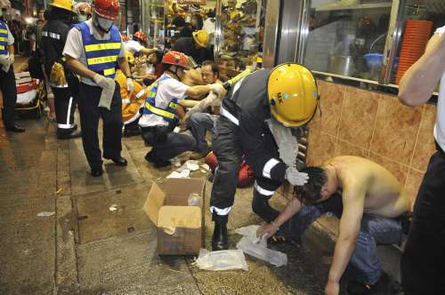 事發(fā)昨晚七時(shí)四十五分左右,當(dāng)時(shí)正下著大雨,有人在上址以兩個(gè)汽水膠樽盛鏹水掟落街,在一名內(nèi)地游客身旁跌落地,撞擊濺出的液體冒出白煙,在現(xiàn)場(chǎng)數(shù)十名游人誤為有人扔垃圾,惟隨即感到皮膚劇痛,才知“中招”,受驚紛紛狂叫,四散跑入附近的店鋪求助。職員實(shí)時(shí)扶傷者到安全地方,同時(shí)取清水讓各人清洗傷口。多輛救護(hù)車(chē)趕往救援,將傷者分送醫(yī)院。警方則動(dòng)員逾二百人進(jìn)行調(diào)查,現(xiàn)場(chǎng)通宵未能解封。