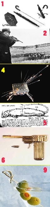 毒雨傘:1978年9月保加利亞異見作家馬爾科夫(Georgi Markov),在倫敦滑鐵盧橋被人用雨傘戳了一下大腿,四天后中毒逝世。事后證實(shí),KGB利用雨傘制造無聲手槍,發(fā)射致命的蓖麻毒素。