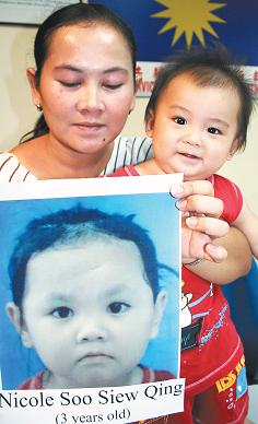 事主5日帶著只有9個(gè)月大的兒子艾比,向馬華公共服務(wù)及投訴部主任拿督張?zhí)熨n求助,希望透過媒體和公眾的幫助尋找愛女。