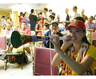 特別買了阿根廷隊球衣的關(guān)嘉怡,在阿根廷被德國淘汰后轉(zhuǎn)向支持西班牙,她吹著刺耳的嗚嗚祖啦,在冷氣室內(nèi)戴著球帽和圍巾,每逢荷蘭隊進攻不果就從椅子上興奮地跳起來手舞足蹈。在終場哨響的時刻,她再度躍起狂歡。(曹健)