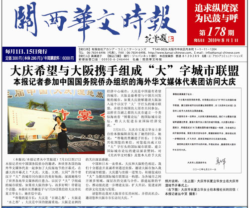 7月31日,大慶市長(zhǎng)夏立華女士親自給日本《關(guān)西華文時(shí)報(bào)》編輯部發(fā)來(lái)了她的回信,她說(shuō):“尊敬的黑瀨道子社長(zhǎng):十分高興收到您的來(lái)信。對(duì)您提出成立以“大”字打頭的國(guó)際城市聯(lián)盟、建立國(guó)際城市論壇的建議深表贊同,對(duì)《關(guān)西華文時(shí)報(bào)》及您本人給予大慶的關(guān)注深表感謝。中國(guó)和日本一衣帶水,大慶和大阪特色相近。我們十分愿意并真誠(chéng)希望通過(guò)貴報(bào),邀請(qǐng)大阪市加入我們的城市聯(lián)盟。大慶愿與貴報(bào)一道努力,積極促成以“大”為媒的國(guó)際城市聯(lián)盟這一構(gòu)想,為各城市之間開(kāi)展多領(lǐng)域、深層次的交流與合作,搭建起新的平臺(tái),推動(dòng)彼此進(jìn)一步增進(jìn)友誼,擴(kuò)大共識(shí),促進(jìn)亞洲經(jīng)濟(jì)文化交流與發(fā)展。請(qǐng)您轉(zhuǎn)達(dá)我對(duì)大阪市市長(zhǎng)的問(wèn)候。并借此機(jī)會(huì),邀請(qǐng)您和大阪市市長(zhǎng)訪問(wèn)大慶。”(渡邊)