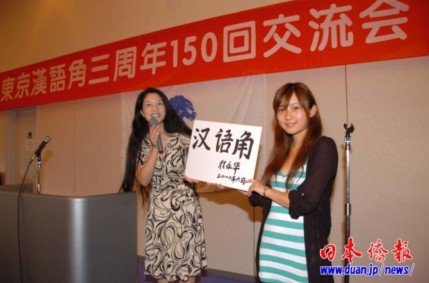 交流會(huì)上展示了中國(guó)駐日大使程永華揮毫題寫(xiě)的“漢語(yǔ)角”3個(gè)大字,顯示了中國(guó)駐日大使館對(duì)中日民間交流的重視和對(duì)舉辦漢語(yǔ)角的支持。
