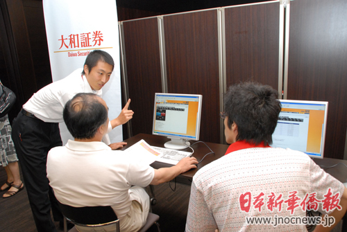 記者在會場上還看見,大和證券為了舉辦此次說明會,準(zhǔn)備工作可謂面面俱到?紤]到中午時間,天氣炎熱,參加說明會的在日華人可能來不及吃午飯,大和證券就特意為大家準(zhǔn)備了豐盛的盒飯和就餐時間;為了讓參會者對外匯實(shí)際操作有一個實(shí)際感覺,大和證券在會場一側(cè)設(shè)置了數(shù)臺電腦和最新款式的iPad平板電腦供大家模擬操作,遇到疑難問題,大和證券的員工們給予熱心仔細(xì)地解說。
