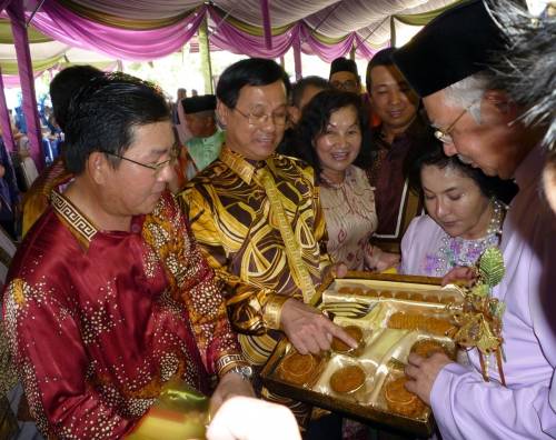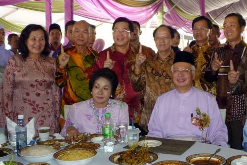 中新網(wǎng)9月19日電 據(jù)馬來(lái)西亞《星洲日?qǐng)?bào)》報(bào)道,馬來(lái)西亞首相納吉18日回到選區(qū)北根舉辦開(kāi)齋節(jié)門(mén)戶開(kāi)放活動(dòng),華總會(huì)長(zhǎng)方天興率領(lǐng)彭亨華人社團(tuán)聯(lián)合會(huì)及彭亨中華工商會(huì)眾領(lǐng)袖一起出席,并贈(zèng)送月餅予首相,象征月圓、人圓、全民團(tuán)結(jié)!