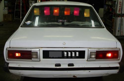 葉運生(57歲)是于14日下午4時,到百貨公司買了6個紙燈籠后,把已有31年車齡的達善轎車駕到汽車裝飾中心,把燈籠掛在汽車后座,并以燈泡取代蠟燭,再把電線連接到電箱,點亮燈籠。