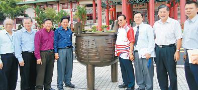 南方學(xué)院院長祝家華說,銅制的“南方之鼎”由新加坡藝術(shù)家陳瑞獻(xiàn)設(shè)計,在廈門制作,耗費5萬令吉,重200公斤,高160公分!笆紫嘣诮舆^火炬后,會在南方之鼎內(nèi)點燃圣火,過后將永久存放南院,象征人文精神永留于此!