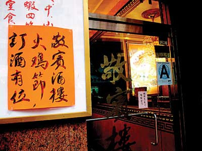 據(jù)敬賓酒樓的業(yè)者介紹,雖然近日才貼出告示,但火雞節(jié)宴席的預(yù)訂其實早在一年前就開始,目前僅中午12點開始的早場還有桌位可供預(yù)訂,下午3點開始的午場和晚上6點開始的晚場宴席早就一搶而空。在閩籍鄉(xiāng)親集中的小區(qū),每年的感恩節(jié)都是酒樓生意最旺的時候,去年感恩節(jié)敬賓酒樓所接做的宴席便逾100場。