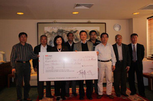 中新網(wǎng)4月23日電 據(jù)新西蘭中華新聞網(wǎng)消息,新西蘭中國(guó)和平統(tǒng)一促進(jìn)會(huì)與新西蘭中國(guó)團(tuán)體聯(lián)合會(huì)4月22日將一張13000紐幣的支票遞交到奧克蘭總領(lǐng)館廖菊華總領(lǐng)事手中,來表達(dá)新西蘭華人華僑對(duì)青海玉樹地震災(zāi)區(qū)同胞的濃濃情意。