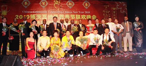 中新網(wǎng)2月20日電 據(jù)非洲《華僑周報》報道,2月13日晚,經(jīng)過緊張的籌備,博茨瓦納僑界2010春晚在博茨瓦納哈博羅內(nèi)大棕櫚國際會議中心(GICC)圓滿成功舉行。中國駐博茨瓦納大使劉煥興、政務(wù)參贊茍皓東夫婦、北京市人大副主任、中國僑聯(lián)副主席、北京市僑聯(lián)主席李昭玲及在博華僑華人約850人同聚一堂,共慶中華民族的傳統(tǒng)佳節(jié)—-虎年春節(jié)。晚會以規(guī)格最高、參與人數(shù)最多創(chuàng)下了歷屆博茨瓦納僑界春晚之最。