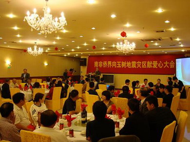會上,吳少康會長帶頭捐款,當場個人捐贈12萬蘭特(南非貨幣單位),著名愛國老華僑李鏗發(fā)先生捐款20萬蘭特,知名老華僑梁職臣先生(以無名氏名義)、南部非洲中華福建同鄉(xiāng)總會和南部非洲上海工商聯(lián)誼總會各捐款10萬蘭特,南部非洲上海世博會推委會主席曹行知先生、南部非洲華僑華人工商聯(lián)合總會和南部非洲粵港澳總商會各捐款8萬蘭特,全非洲華人女企業(yè)家工商聯(lián)合總會、南部非洲吉林總商會、南部非洲中原總商會、南非江蘇省同鄉(xiāng)會和南非紫荊會等20多個僑團及其僑領(lǐng)也都分別以僑團或個人的名義踴躍捐款,爭相表達對災(zāi)區(qū)人民的關(guān)愛之情。當日,總計為地震災(zāi)區(qū)捐款達到138萬另8千蘭特(R1,388,000元)。