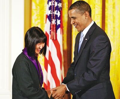 中新網(wǎng)2月27日電 據(jù)美國《世界日報》報道,20歲那年設計華盛頓越戰(zhàn)紀念碑而一夜成名的華裔建筑師林瓔(Maya Lin),當?shù)貢r間25日晚在白宮獲奧巴馬總統(tǒng)頒發(fā)2009年國家藝術獎章。林瓔這項成功的設計已和美國歷史融為一體。