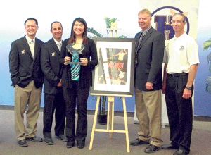 在坎伯學(xué)院20日專門為葉惠恩舉行的頒獎儀式上,葉惠恩從安省學(xué)院運(yùn)動協(xié)會(OCAA)行政總監(jiān)Blair Webster的手中,接過協(xié)會每年僅頒發(fā)給一名女運(yùn)動員和一名男運(yùn)動員的年度運(yùn)動員獎項。據(jù)坎伯學(xué)院運(yùn)動體育總監(jiān)Doug Fox介紹,本獎項是很少由新生獲得,葉惠恩也是該校首個獲此獎項的新生。