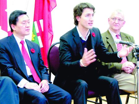 中新網(wǎng)11月12日電 據(jù)加拿大《明報》報道,加拿大前總理杜魯多兒子,被視為政壇未來新星,現(xiàn)為蒙特利爾國會議員兼自由黨青年及多元文化事務(wù)評論員的賈斯廷(Justin Trudeau),10日到訪以其父親命名,位于萬錦市的Pierre Elliott Trudeau High School之余,順道探訪萬錦加華聯(lián)會,并與中文傳媒會面,除分享其個人對從政感受之余,并收集華社對政府有關(guān)政策意見,以便在國會做出反映。