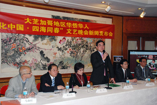 當(dāng)?shù)貢r(shí)間1月17日上午,中國駐芝加哥總領(lǐng)事館和大芝加哥地區(qū)華僑華人“文化中國•四海同春”活動(dòng)籌備委員會(huì)在總領(lǐng)事館會(huì)議大廳召開新聞發(fā)布會(huì),芝加哥各華文媒體記者和七十多個(gè)華人社團(tuán)以及留學(xué)生代表一百多人出席。芝加哥總領(lǐng)館黃屏總領(lǐng)事、謝云亮副總領(lǐng)事、儲(chǔ)茂明副總領(lǐng)事與大家見面。會(huì)上籌委會(huì)的總協(xié)調(diào)人和有關(guān)僑胞代表分別匯報(bào)了籌辦情況,并宣布了有關(guān)工作班子。與會(huì)者紛紛表示,將會(huì)積極做好各項(xiàng)準(zhǔn)備工作,隆重?zé)崃业貧g迎代表團(tuán)的到來。