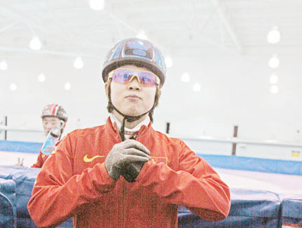 王濛8日晚大部分時間都是獨自練習(xí),很少與隊友同場滑冰,相信是訓(xùn)練策略之一。人稱“假小子”的王濛練習(xí)完畢后,并沒有接受訪問,但有應(yīng)媒體要求拍照,又拿出兩只老虎公仔合照,并且趁虎年即將到來,抱拳向溫哥華的華人拜個早年。
