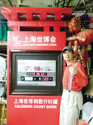 黃漢龍介紹他制作的上海世博會倒計時鐘,將擺放在舊金山灣區(qū)佛利蒙永和超市前,讓灣區(qū)僑胞也能一起為上海世博倒計時并迎接上海世博會的到來。