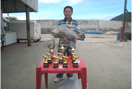 23日中午,大家滿載著喜悅和收獲陸續(xù)回到岸邊。在簡短的頒獎儀式上,頒發(fā)了獎杯和獎金。會長吳耀宙先生以單條最重獲得第一名,成績是7.18kg,并獲得獎金800元;獲得第二名的是來自韓國的DANIEL李先生,成績是5.98 kg,并獲得獎金500元;獲得第三名的是ANDRE陳先生,成績是5.00 kg,并獲得獎金300元。7條船上的優(yōu)勝者也得到獎杯和紀念品。