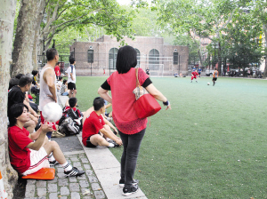 位于格蘭街的羅斯福球場是華埠唯一像個模樣的足球場,是體育會必爭之地,周日上午是華協(xié)體育會踢球,下午則多是華聯(lián)體育會租借。張少偉說,跟4年前一樣,該會在世界杯期間舉辦了“小型世界杯”比賽,共有9支隊伍參賽,今次除華人隊伍之外,還有越南、荷蘭、墨西哥、意大利、韓國等族裔組隊參加,有些隊伍因人數(shù)不夠,大會也批準隊伍中可有女性球員。