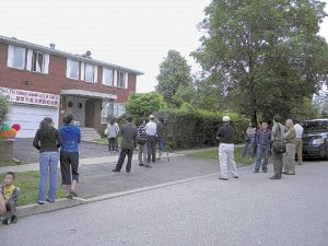 唐煒臻的燒烤會(huì)13日下午2時(shí)許,如期在其家中的后院舉行,唐在家門前對(duì)媒體做了一番有關(guān)自己的案件是“冤假錯(cuò)案”的表白。他家的車房門上方,依舊高懸寫有中英文口號(hào)的橫額“唐煒臻一案,加拿大最大的冤假錯(cuò)案”。