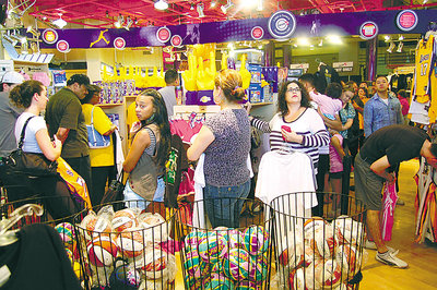 西裔諾加勒斯一家祖孫三代到湖人隊用品店選購各自中意的服裝、鞋帽。他表示,一直是湖人隊忠實球迷,經(jīng)常購買湖人隊紀(jì)念品,所有紀(jì)念品加起來可辦一個收藏展。