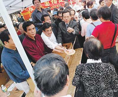 中新網(wǎng)9月23日電 據(jù)美國《世界日報》報道,今年的農(nóng)歷中秋佳節(jié)落在10月3日,美國福建同鄉(xiāng)會21日與20多個社團和政府部門在紐約曼哈頓華埠舉行盛大的“中秋福建街坊節(jié)”,吸引超過5000民眾參加,其中大部分為閩籍鄉(xiāng)親,也有不少非華裔民眾湊熱鬧。福建同鄉(xiāng)會并在下午為鄉(xiāng)親派發(fā)福建的傳統(tǒng)月餅,共派出1500多份,眾多鄉(xiāng)親開心排隊領(lǐng)取。