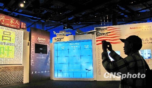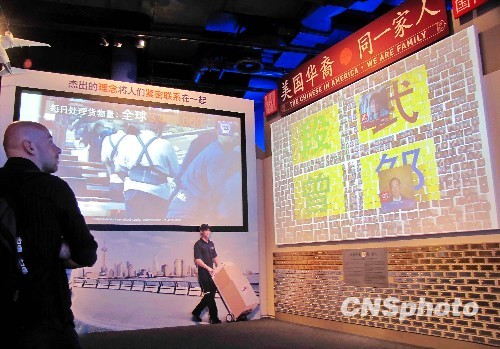 2010年5月12日,美國(guó)華裔精英組織“百人會(huì)”發(fā)起的“美國(guó)華裔——同一家人”展覽,在上海世博會(huì)美國(guó)館展出。一萬(wàn)多張不同年齡、職業(yè)和出生地的美國(guó)華裔的頭像以照片、視頻的形式在 “百姓墻”上展出,全部照片按中文姓氏的編排不停切換畫面,形成一條串聯(lián)起美國(guó)華裔和中國(guó)參觀者的情感紐帶。 中新社發(fā) 井韋 攝