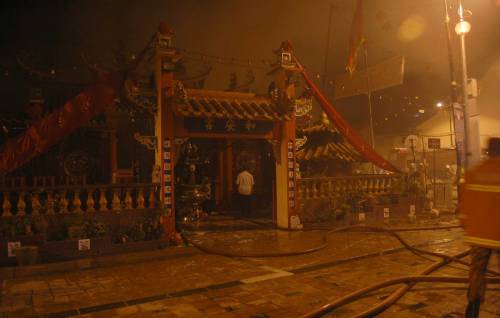 他指出,15名包括他在內(nèi)的消拯員用了25分鐘撲滅火勢,及時阻止火勢蔓延至鄰近民宅。“我們抵達時,發(fā)現(xiàn)廟宇內(nèi)部中間起火,可是由于前門深鎖,我們唯有從廟宇的后門破門而入!彼f,由于廟宇內(nèi)有許多易燃物品,所以火勢蔓延得很快,內(nèi)部近60%遭燒毀。