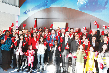 而參加宣誓儀式的“新加拿大人”們都很高興能在冬奧期間收到這樣一份驚喜,也對(duì)自己做出這項(xiàng)人生重大決定而感到欣慰。他們紛紛表示從現(xiàn)在開(kāi)始要努力盡到公民的義務(wù),為加拿大的未來(lái)貢獻(xiàn)自己一份力量。據(jù)悉,加拿大每年約有17萬(wàn)來(lái)自不同國(guó)家和地區(qū)的移民宣誓入籍成為公民。